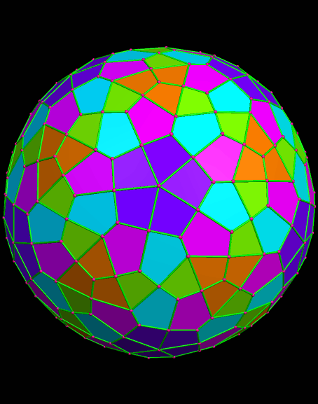 300-faced dual of 362-faced expanded snub dodecahedron convex hull augmented with 3x prisms Published 13 June 2014 at 454 × 577 in A Gallery of Twenty-One Polyhedra with Icosidodecahedral Symmetry