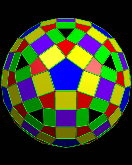 Convex hull of prismaugmented strombic hexacontahedron Published 13 June 2014 at 462 × 577 in A Gallery of Twenty-One Polyhedra with Icosidodecahedral Symmetry