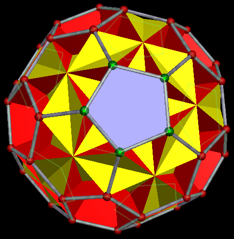In this next pic, the decagonal faces formed above are shown in red, and a new set of pentagonal faces is being created.