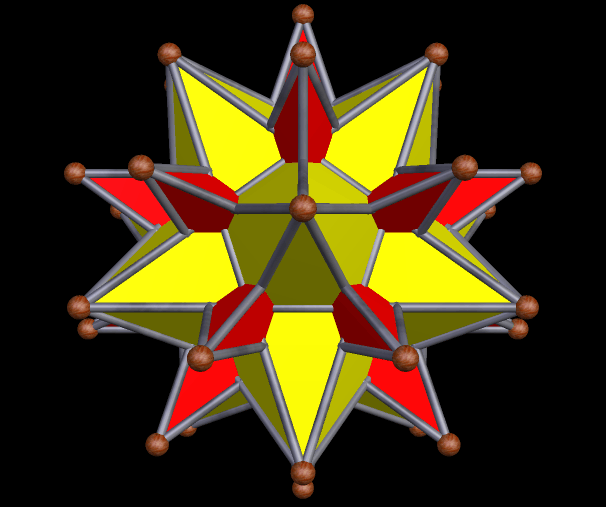 Compound of Great Stellated Dodeca and Small Stellated Dodeca color scheme 2 Published 25 April 2015 at 606 × 507 in Compound of the Great and Small Stellated Dodecahedra