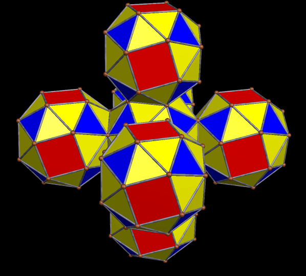 Snub Cube A augmented with B Published 25 April 2015 at 598 × 540 in On Consistent and Inconsistent Combining of Chiralities, Using Polyhedral Augmentation