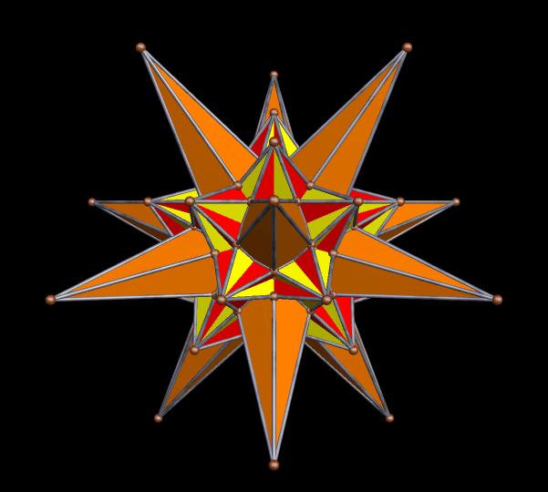 Compound of enantiomorphic pair of 157th stellations of ID Published 8 May 2015 at 601 × 540 in A Large Collection of Polyhedra with Icosidodecahedral Symmetry, Some of Them Chiral