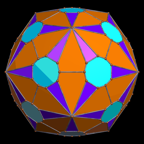 Dual of Conjhvex hull Published 21 July 2015 at 500 × 500 in Thirty-Four Rotating, Convex, and Non-Chiral Polyhedra with Icosidodecahedral Symmetry