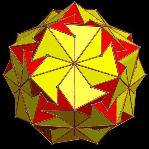 171st stellation of the rhombic enneacontahedron Published 25 October 2015 at 500 × 500 in Eight Selections from the Stellation-Series of the Rhombic Enneacontahedron