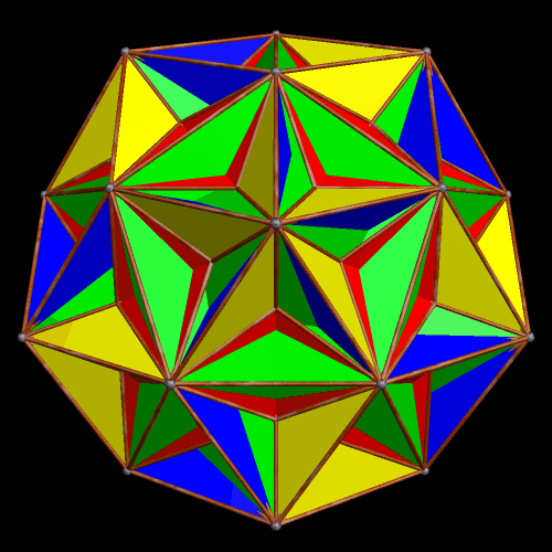 The simplest way I can explain faceting is that it takes a familiar polyhedron’s vertices, and then connects them in unusual ways, so that you obtain different edges and faces. If you take the convex hull of a faceted polyhedron, it returns you to the original polyhedron.