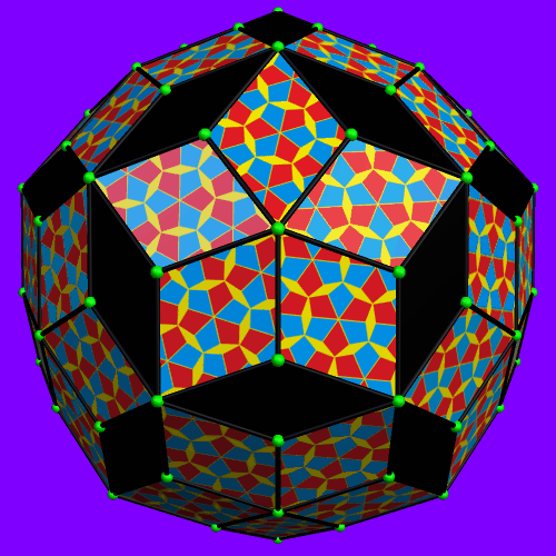 Zonohedrified Dodeca Published 8 December 2015 at 500 × 500 in A Rhombic Enneacontahedron, Adorned with Jumpy Tessellations Which Resemble Rhombic Enneacontahedra