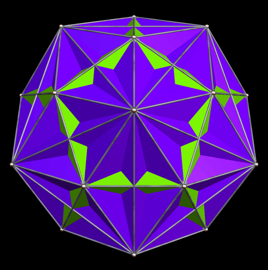 Faceted Rhombic Triaconta Published 22 January 2016 at 536 × 540 in 87 Rotating Non-Convex, Non-Chiral Polyhedral Images Featuring Icosidodecahedral Symmetry, Plus Four Which Snuck In with Cuboctahedral Symmetry — Can You Find All the Intruders?