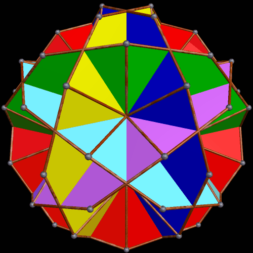 Faceted Rhombicosidodeca compound of six elongated pentagonal prisms the dual six trapezohedra Published 22 January 2016 at 500 × 500 in 87 Rotating Non-Convex, Non-Chiral Polyhedral Images Featuring Icosidodecahedral Symmetry, Plus Four Which Snuck In with Cuboctahedral Symmetry — Can You Find All the Intruders?