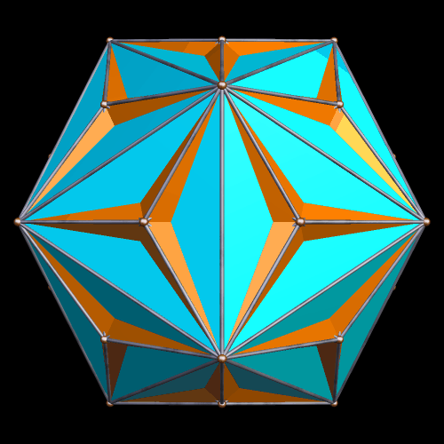 Faceted Triakisicosa which is the dual of the 22nd stellation of the truncated dodecahedron Published 22 January 2016 at 500 × 500 in 87 Rotating Non-Convex, Non-Chiral Polyhedral Images Featuring Icosidodecahedral Symmetry, Plus Four Which Snuck In with Cuboctahedral Symmetry — Can You Find All the Intruders?