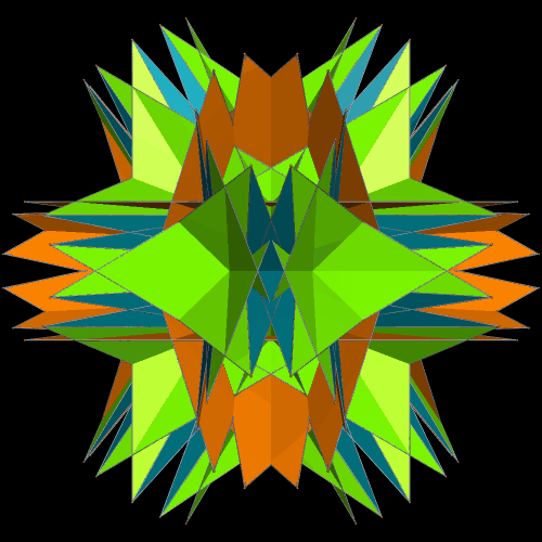 jettigl Published 22 January 2016 at 500 × 500 in 87 Rotating Non-Convex, Non-Chiral Polyhedral Images Featuring Icosidodecahedral Symmetry, Plus Four Which Snuck In with Cuboctahedral Symmetry — Can You Find All the Intruders?