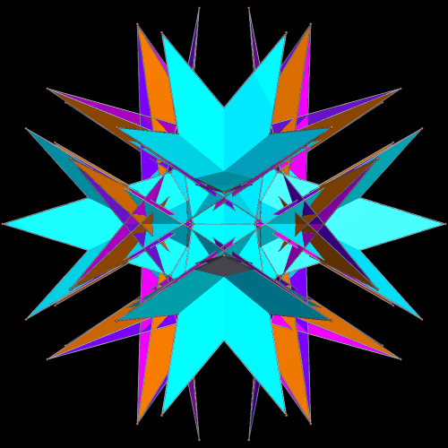 Unhfhfnamed Dual Published 22 January 2016 at 500 × 500 in 87 Rotating Non-Convex, Non-Chiral Polyhedral Images Featuring Icosidodecahedral Symmetry, Plus Four Which Snuck In with Cuboctahedral Symmetry — Can You Find All the Intruders?