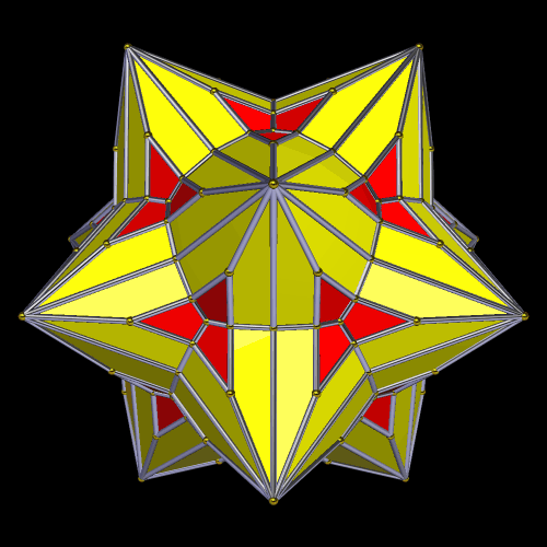 Zonohedrified Icosidodeca stellated a lot Published 26 August 2016 at 500 × 500 in A Deck of Polyhedra
