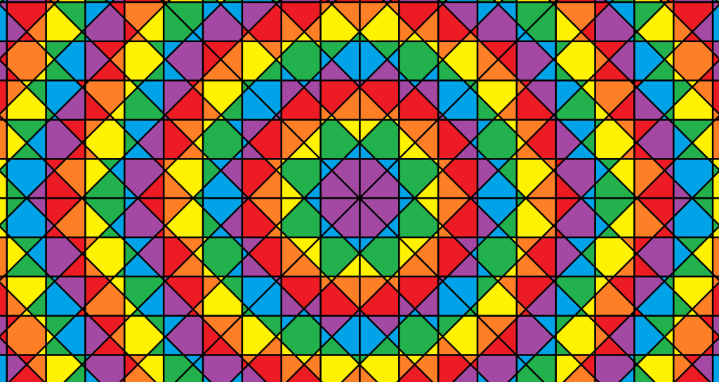 The first of these used the center of a square as the center of rotation. This one, by contrast, uses an intersection as the center of rotation. In each case, 45 degrees is the angle used.