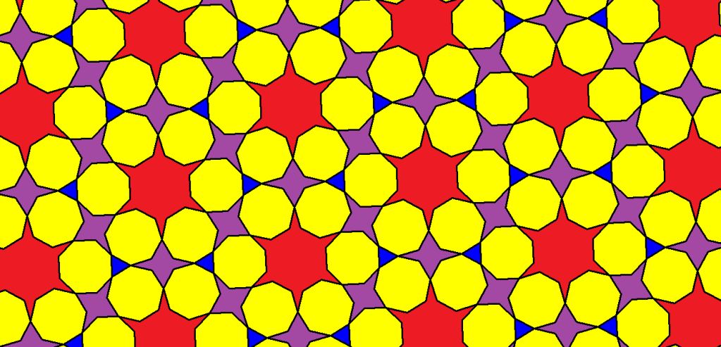 1 thought on “A Tessellation Featuring Regular Octagons and Triangles, Together with Equilateral Four- and Six-Pointed Stars”