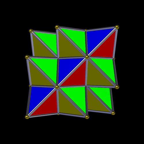 I made this variation of Kepler’s Stella Octangula, using Stella 4d, software you can try for free at this website.