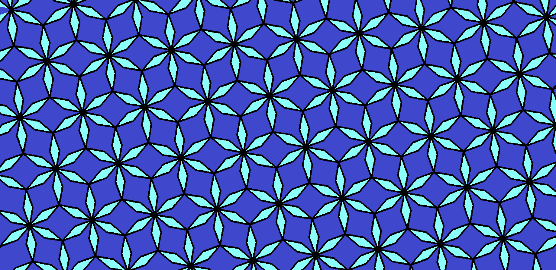 2 thoughts on “Tessellation in Blue, Consisting of Rhombi and Concave, Equilateral Octagons