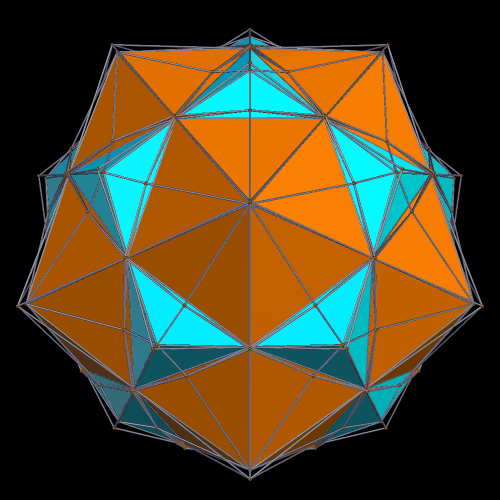 “Morph Duals By Tilting To Duals” is a Stella 4d feature that I haven’t used much. Here’s what happens if you apply it to an icosahedron, at the 50% morphing level: you get the compound of the icosahedron and its dual, the dodecahedron,
