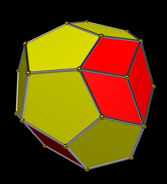 To make this, I stellated the dual of the tetrated dodecahedron over 200 times, and then applied Stella 4d‘s “try to make faces regular” function. This is probably not the easiest method to use, but I don’t know of any others. The quadrilaterals are all kites.