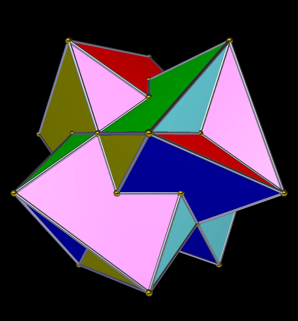 To make this polyhedron using Stella 4d (available here), I started with the dodecahedron, dropped the symmetry of the model down to tetrahedral, and then stellated it twice.