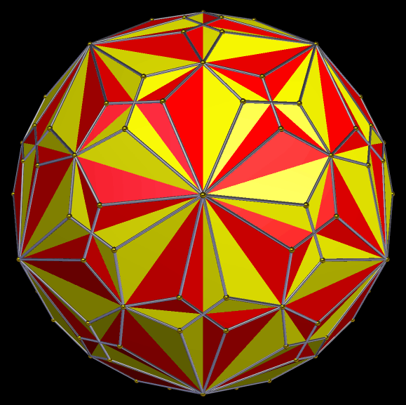 This is a compound of left- and right-handed versions of the chiral Catalan solid known as the pentagonal hexecontahedron, which is the dual of the snub dodecahedron. I made it using Stella 4d, which you can try for free at http://www.software3d.com/Stella.php.