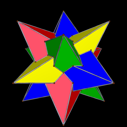 Later, when you get to the 65th stellation, the result is a compound of four triangular dipyramids.