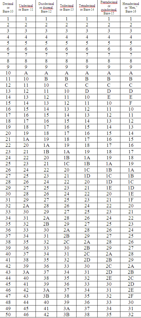 BASES 10 TO 16