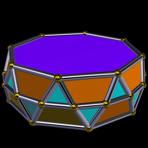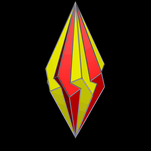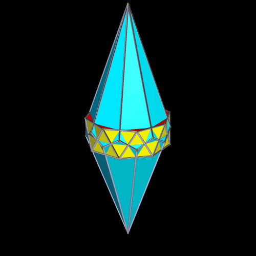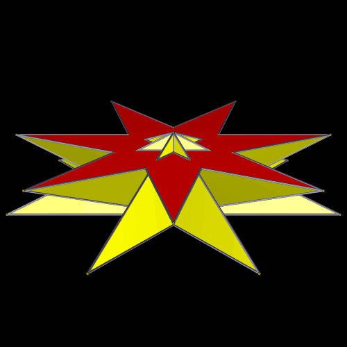 The rest of the polyhedra in this post were made from this antiprism, using the functions available in Stella 4d: Polyhedron Navigator, such as stellation and faceting. If you’d like to try this program yourself, you can do so, free, at http://www.software3d.com/Stella.php.