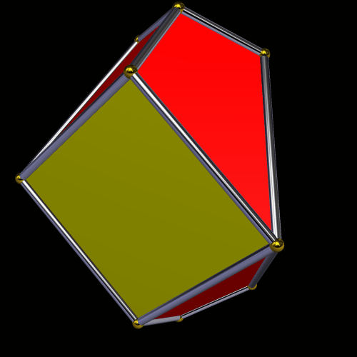 Enneahedra are nine-faced polyhedra. This particular one has three square faces, and six kite faces. I made it from a triangular prism, using Stella 4d, which you can try for free at http://www.software3d.com/Stella.php.