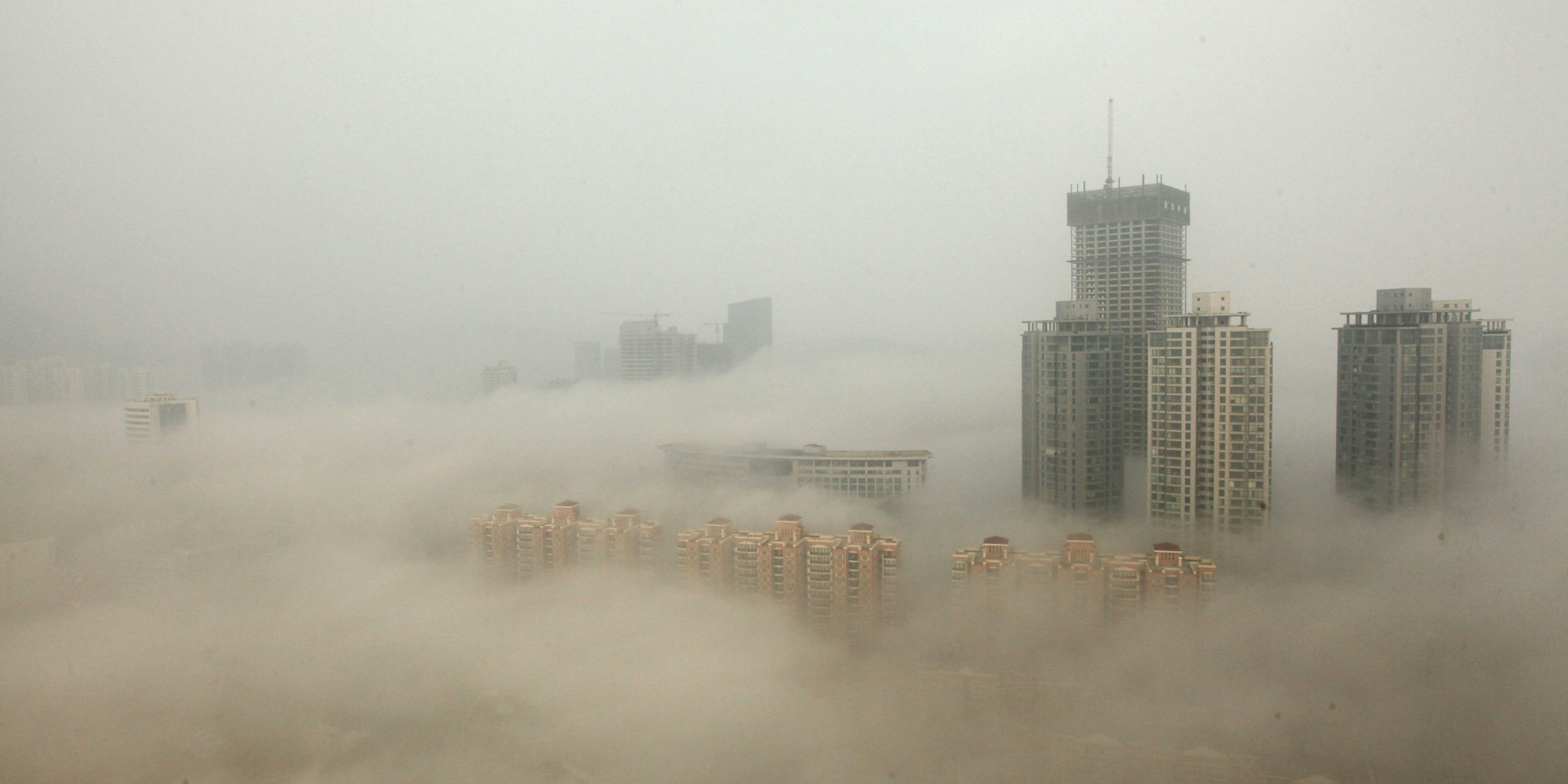 LIANYUNGANG, CHINA – DECEMBER 08: (CHINA OUT) Buildings are shrouded in smog on December 8, 2013 in Lianyungang, China. Heavy smog has been lingering in northern and eastern parts of China since last week, disturbing the traffic, worsening air pollution and forcing the closure of schools. (Photo by ChinaFotoPress/Getty Images)