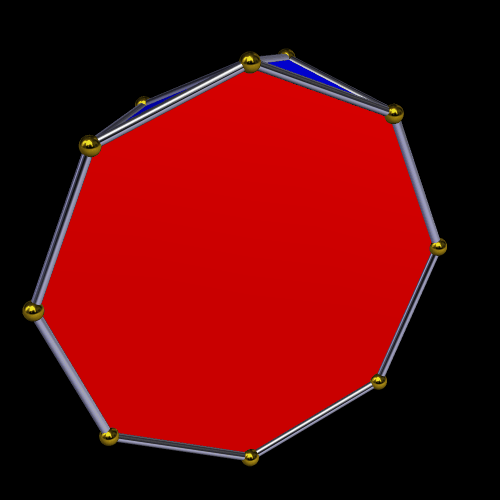 One more infinite family of polyhedra may be found, using the antiprisms: their duals. The dual of the pentagonal antiprism looks like this: