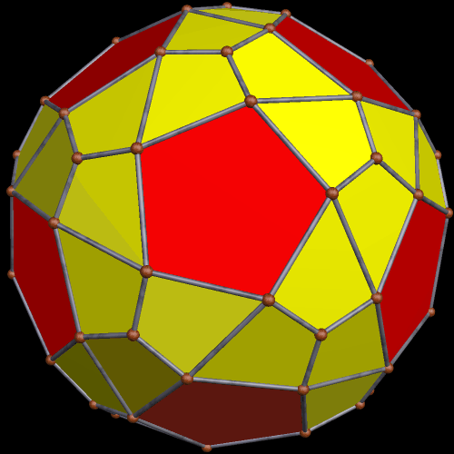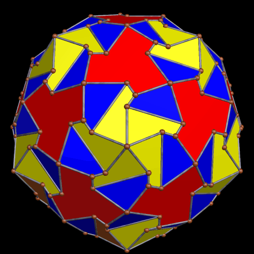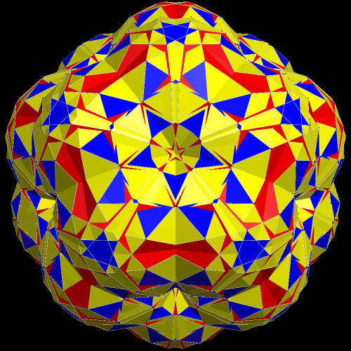The next two are the great rhombicosidodecahedron, and one of its facetings. This polyhedron is also called the truncated icosidodecahedron.