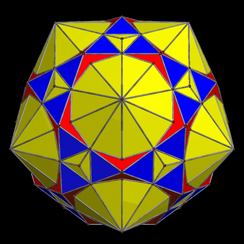 Later, when you get to the 65th stellation, the result is a compound of four triangular dipyramids.