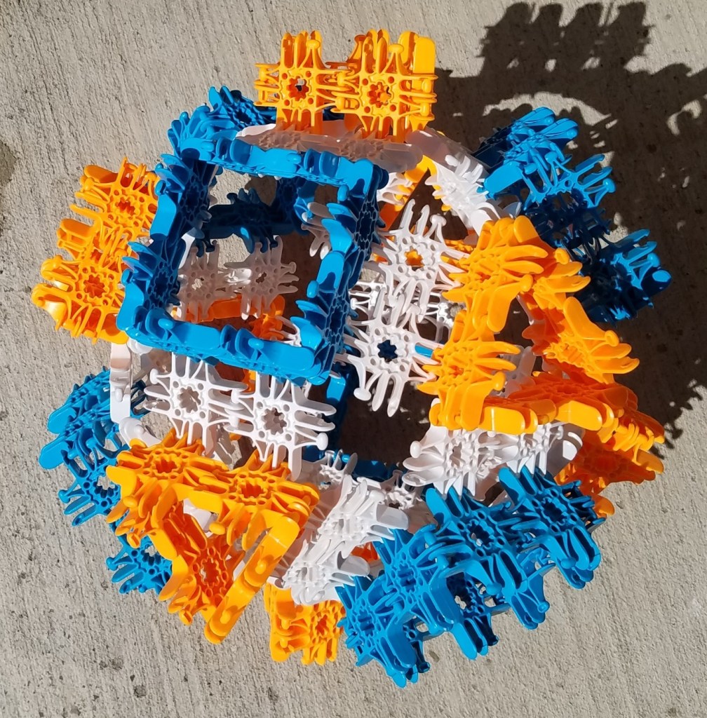 This cuboctahedron has an edge length of two. If you’d like to compare it to a Lux model with a edge length of one, just check the post right before this one. Lux Blox are fun to build with, and are sold online at http://www.luxblox.com.