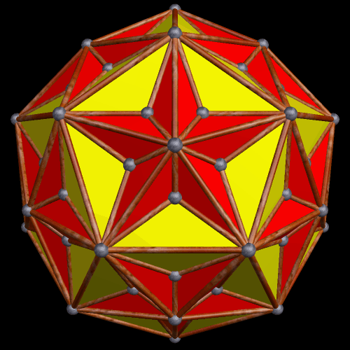 The next two are the great rhombicosidodecahedron, and one of its facetings. This polyhedron is also called the truncated icosidodecahedron.