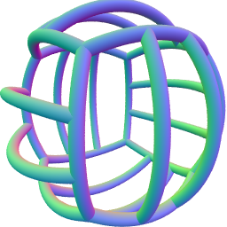 To most people, the most familiar object with pyritohedral symmetry is a volleyball. Here is a diagram of a volleyball’s seams, found on Wikipedia.