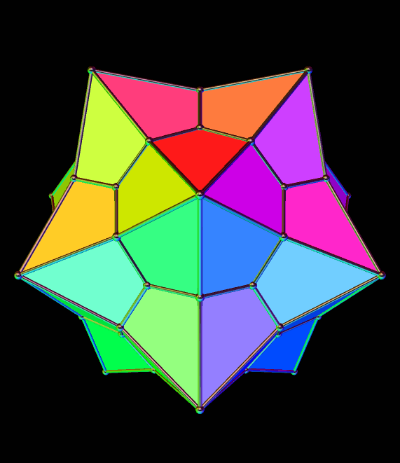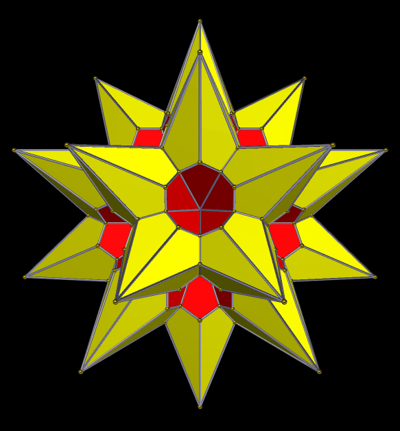 I then started stellating this solid. The 16th stellation was interesting, so I made a virtual model of it.