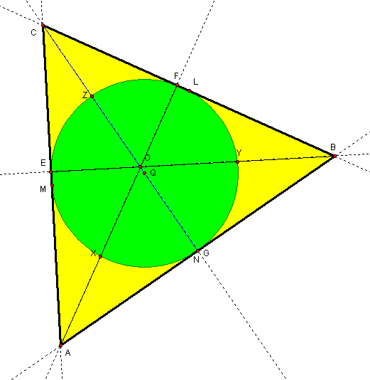 In this diagram, the original triangle is ABC, and is yellow. The brown line, u, is that triangle’s Euler Line, which contains the triangle’s orthocenter (O), circumcenter (K), centroid (R), and nine-point circle center (circle shown, centered at Q). The point I have found on the Euler Line is at W.