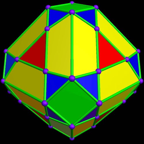 When Norman Johnson first found, and named, all the Johnson solids in the latter 1960s, he came across a number of “near-misses” — polyhedra which are almost Johnson solids. If you aren’t familiar with the Johnson solids, you can find a definition of them here. The “near-miss” which is most well-known features regular enneagons (nine-sided polygons):
