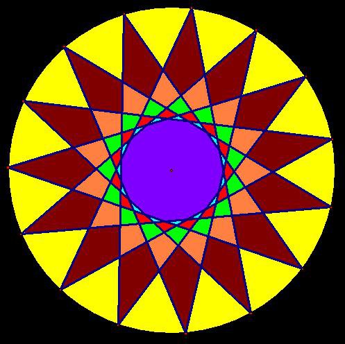 The twelve purple faces of this faceted dodecahedron show up on Stella 4d‘s control interface as {10/4} star decagons, which would make them each have five pairs of two coincident vertices. I’m informally naming this special decagon-that-looks-like-a-pentagram (or “star pentagon,” if you prefer) the “antipentagram,” for reasons which I hope are clear.