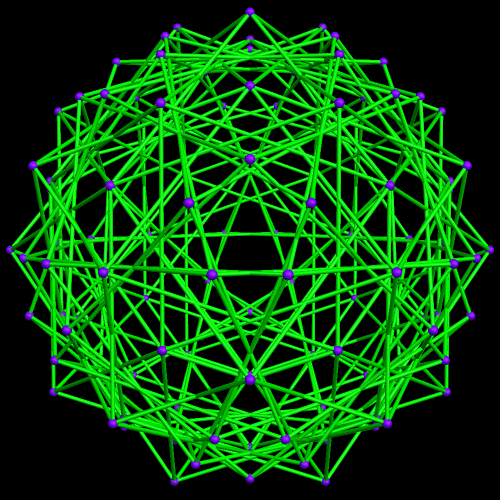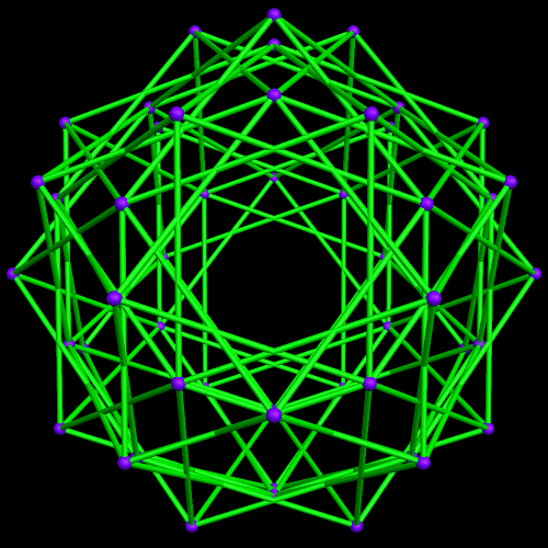 I made this using Stella 4d, software you can find at http://www.software3d.com/Stella.php. I also make a second version, with larger spheres and cylinders for the vertices and edges: