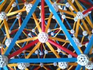 Zome is a three-dimensional ball-and-stick geometrical modeling system based on the Golden Ratio. I have a large collection, and have used it for years, both as a teaching tool, and for my own investigations. Zome is available for sale at www.zometool.com.
