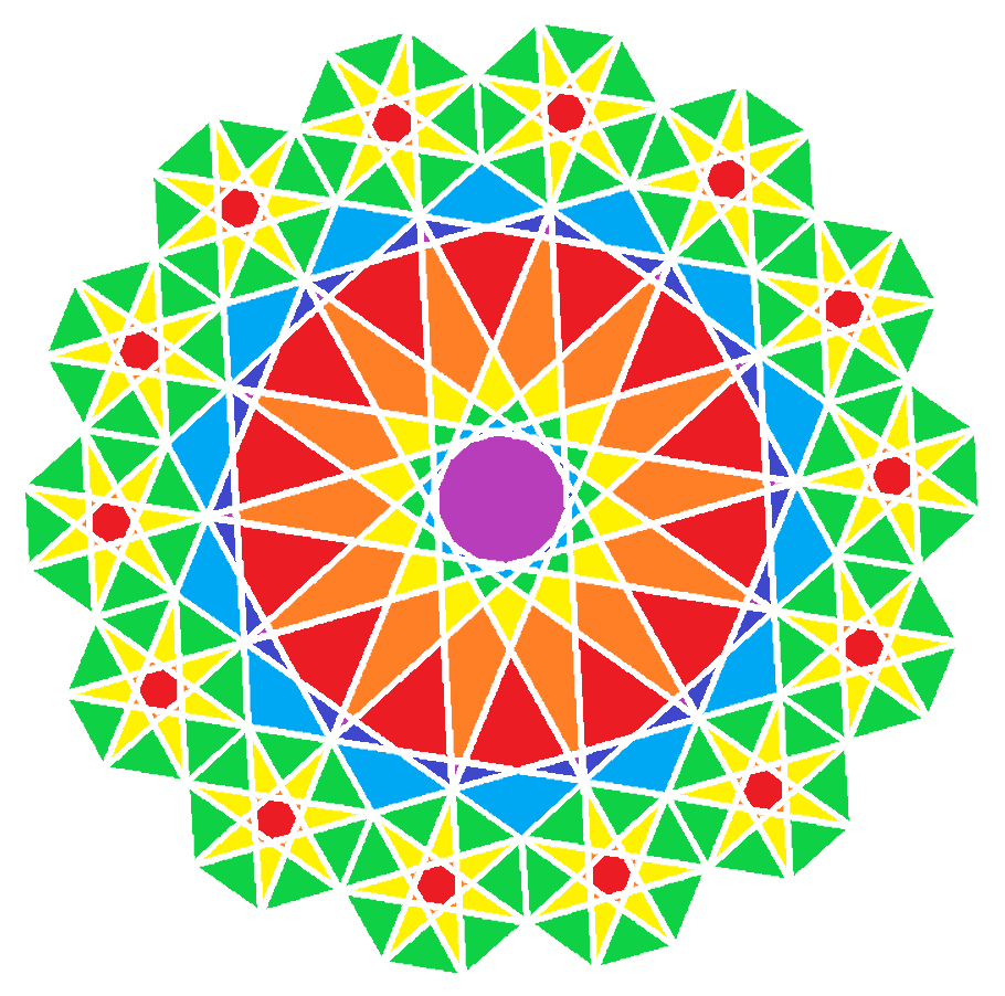 All of this work was performed using Geometer’s Sketchpad. I then took a screenshot, moved the design to MS-Paint, and used that program to add the colors seen in the image at the top of this post.