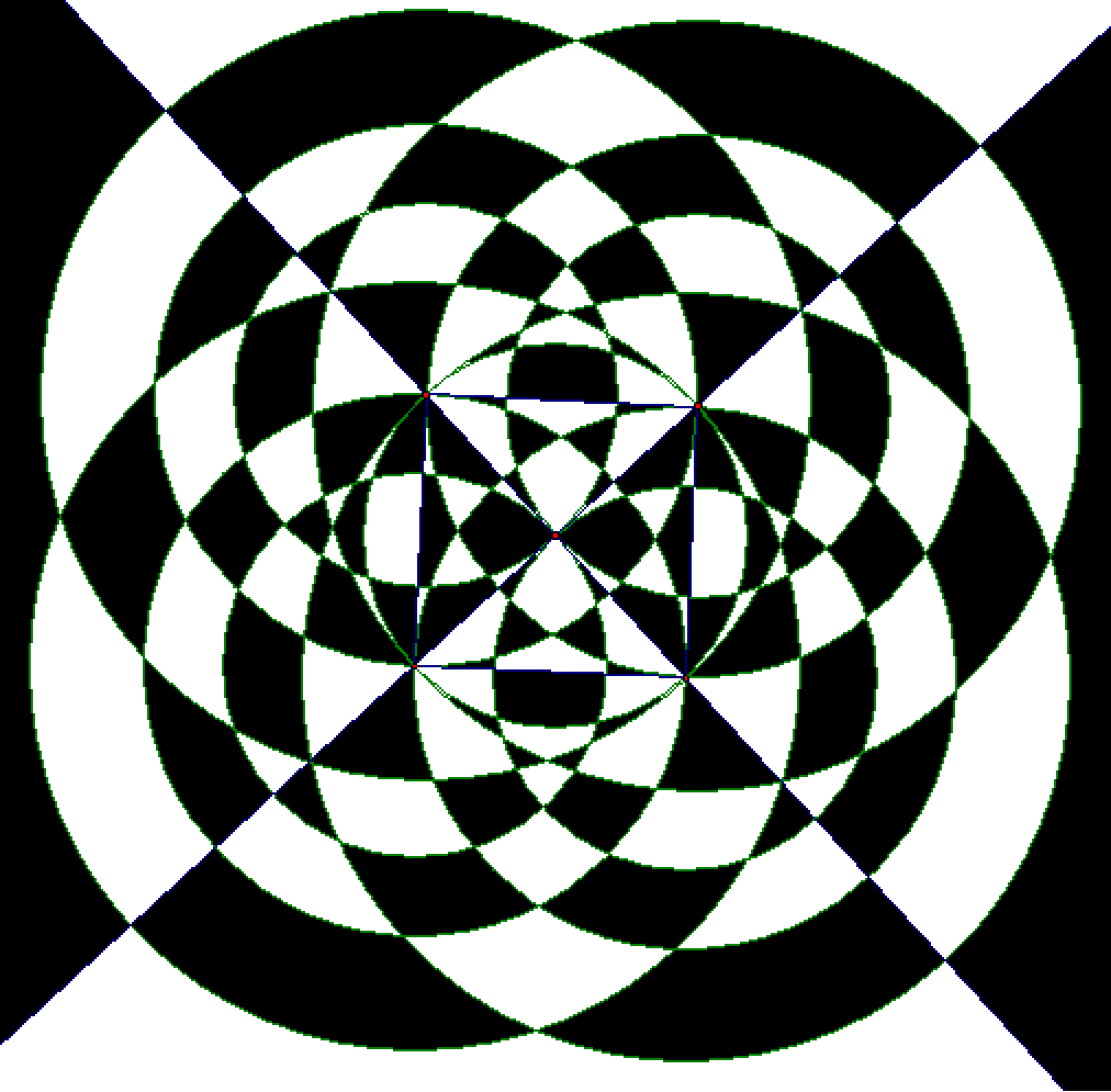 An exploration of one way to surround points with hexagons, triangles, and squares.
