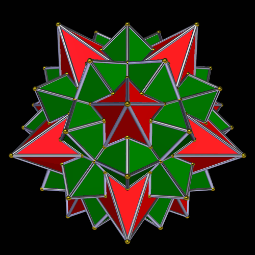Stellating polyhedra is one of the things Zome was invented for. The images below are two different rotations of a stellated tetrahedrally-diminished dodecahedron.