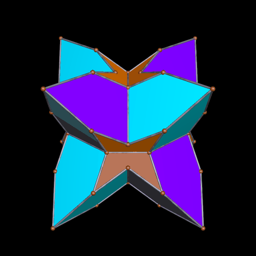 Lastly, of the pictures in this post, the seven which feature rotating polyhedra were created using Stella 4d: Polyhedron Navigator, software which may be purchased, or tried for free, at this website.