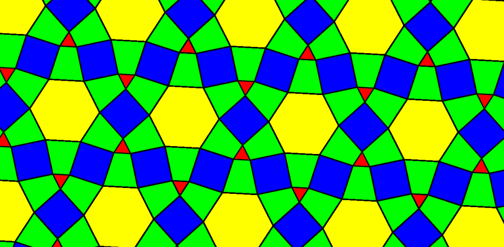 If you’d like to see the first version of this tessellation, made over a decade ago, this is where you’ll find it. https://robertlovespi.net/2014/06/08/tessellation-of-the-plane-with-regular-hexagons-squares-and-tetraconcave-equilateral-octagons/