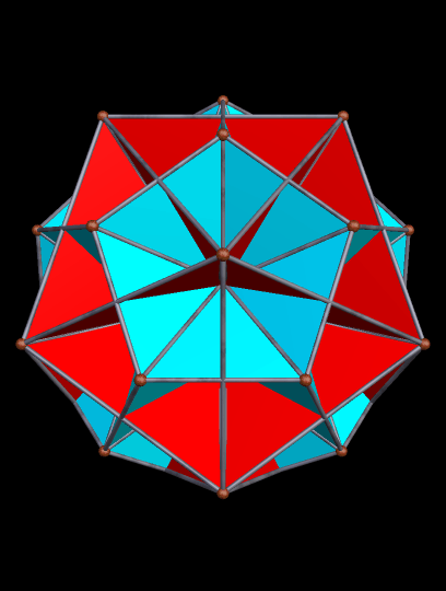 Stellating polyhedra is one of the things Zome was invented for. The images below are two different rotations of a stellated tetrahedrally-diminished dodecahedron.