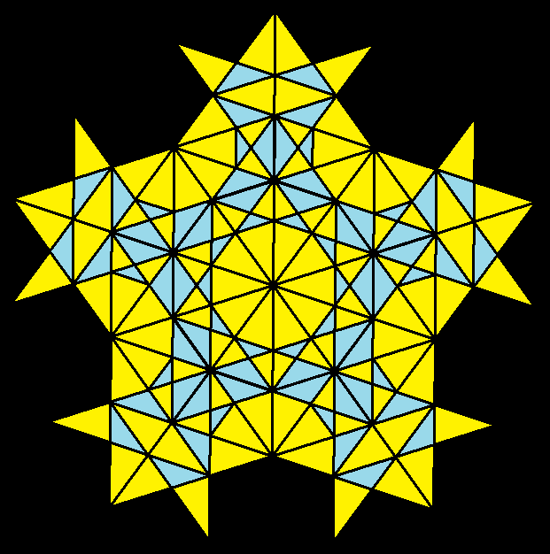 Alternately, this can be seen as a tessellation of blue diconcave hexagons and yellow triconcave enneagons. Which do you see?