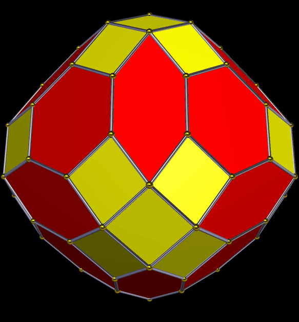 This zonohedron is made from the truncated octahedron’s vertices, edges, and faces. I made it using Stella 4d, which you can try for free at http://www.software3d.com/Stella.php.